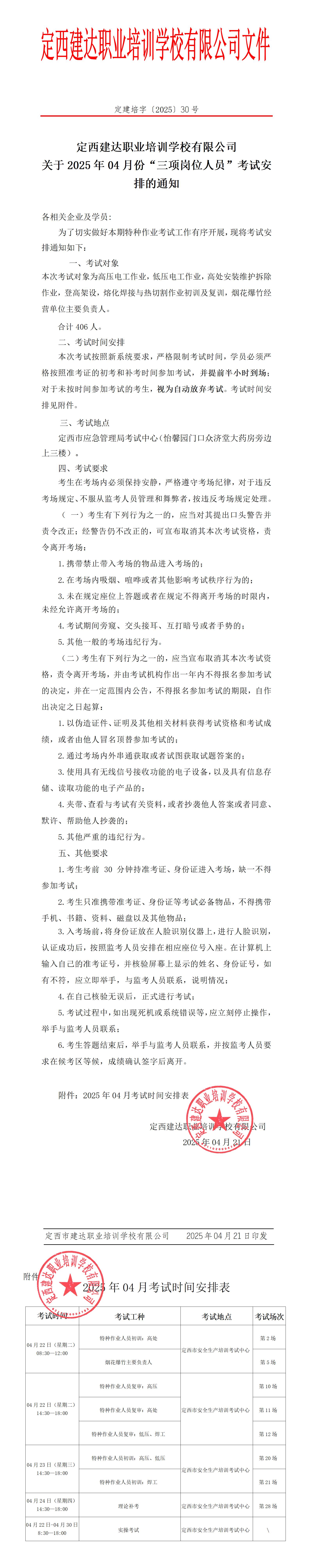 关于2025年四月三项岗位人员考试通知
