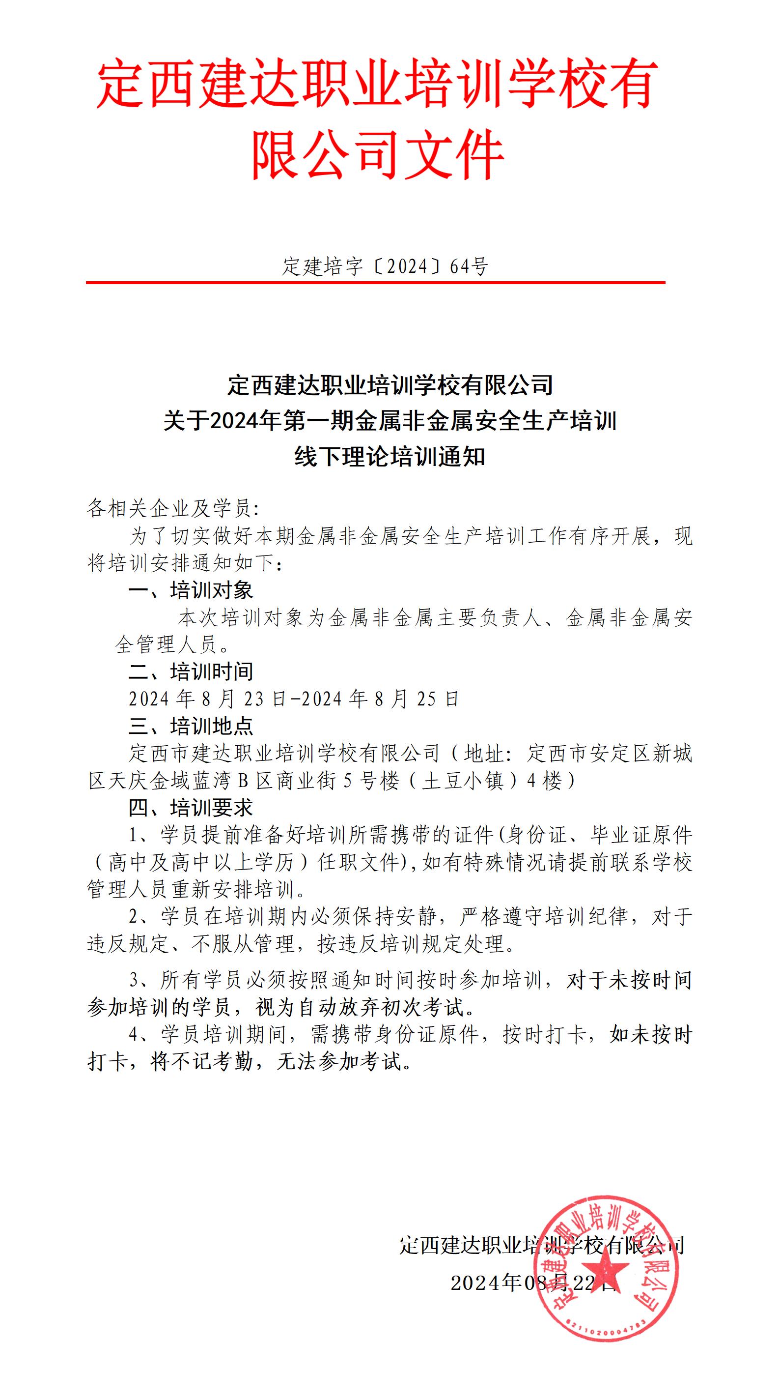 关于2024年第一期金属非金属安全生产培训线下理论培训通知